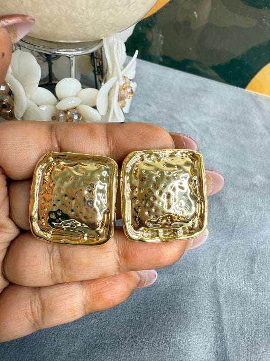 Golden Aura Textured Square Statement Earrings