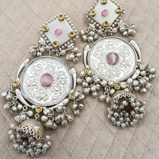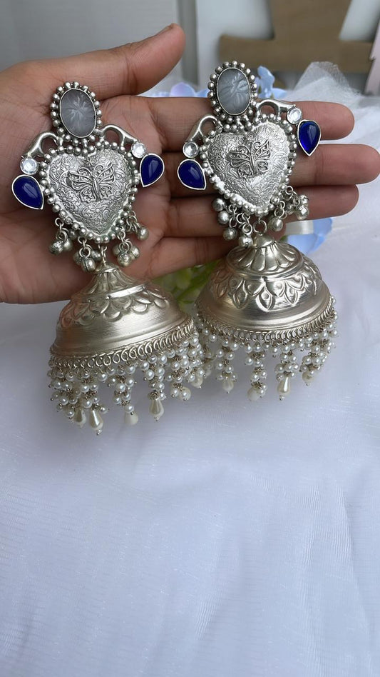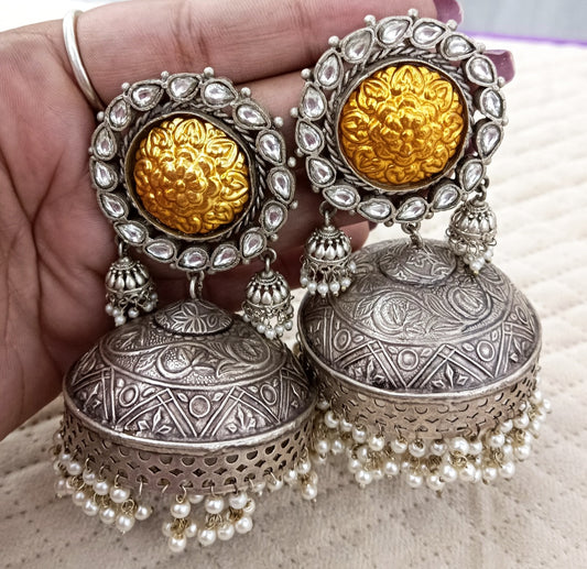 Antique Silver Plated Jumbo Jhumkas