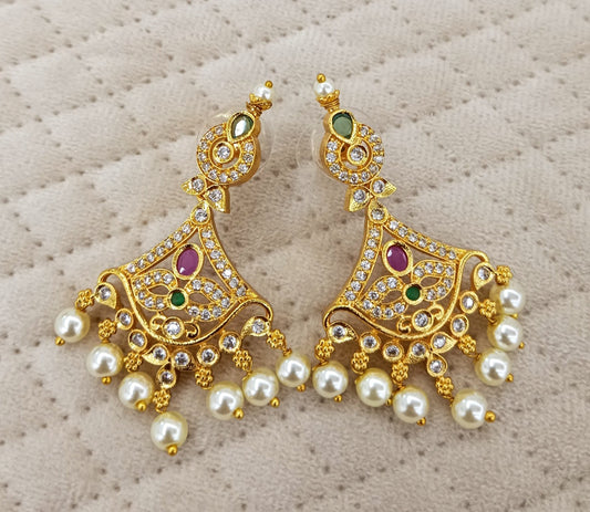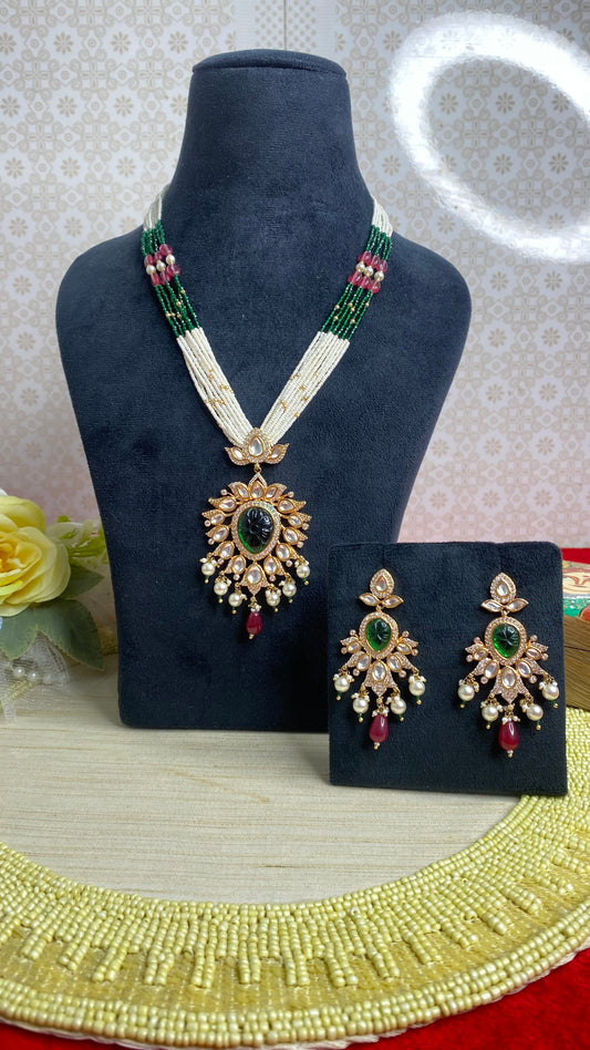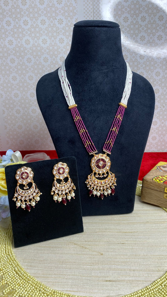 Long Pearl kundan necklace set