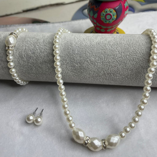 Freshwater White Pearl Stone Necklace Set with Bracelets