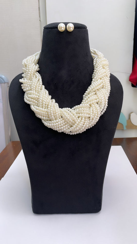 Classic Multi-Strand Pearl Necklace with Matching Pearl Stud Earrings.