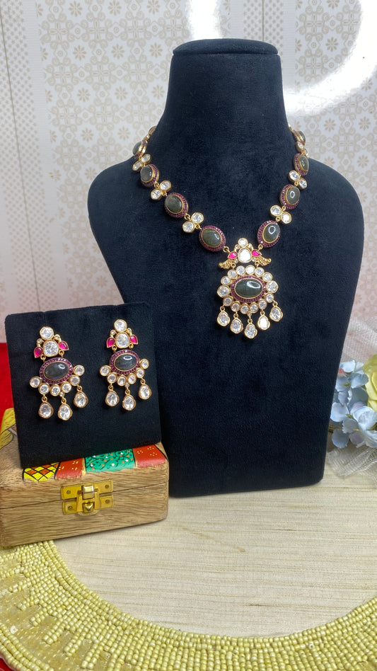 Sold outNatural stone necklace with kundan