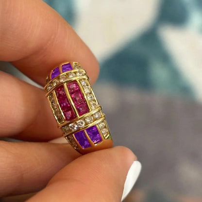 The ColorBurst Band brings a vibrant splash to any outfit, with its stunning array of multicolored stones set on a sleek Western-style band.