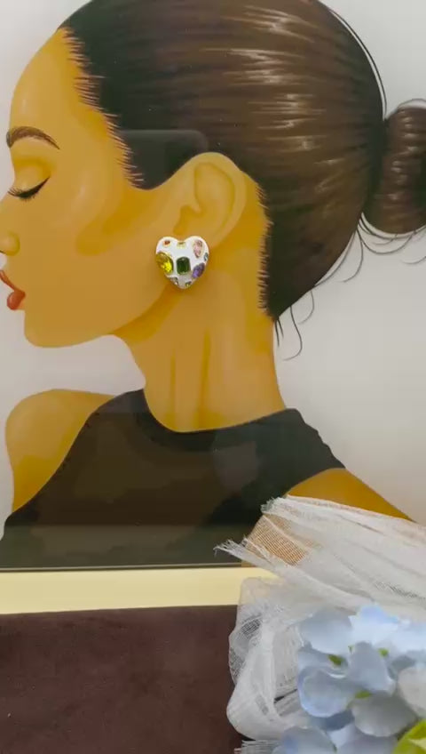 Fall in love with sparkle this Valentine’s season with our Cupid Prism Heart Stud Earrings from Senoritabyparnita. Crafted in a charming heart silhouette, these earrings feature a glossy white enamel base adorned with radiant multi-color stones and a luxe gold-tone finish—symbolising romance, joy, and timeless elegance.